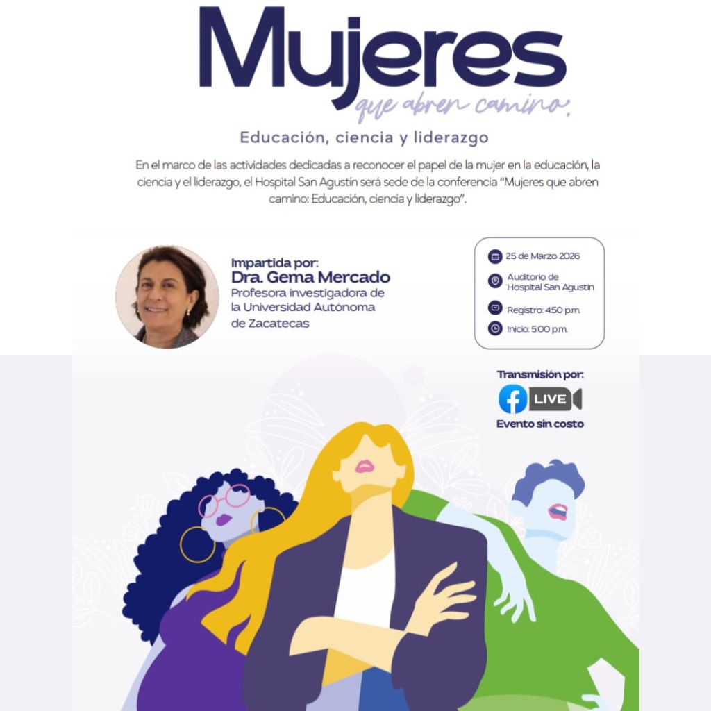 En el marco de las actividades enfocadas en reconocer el papel de la mujer en distintos ámbitos, Hospital San Agustín será sede de la conferencia “Mujeres que abren camino: educación, ciencia y liderazgo”.